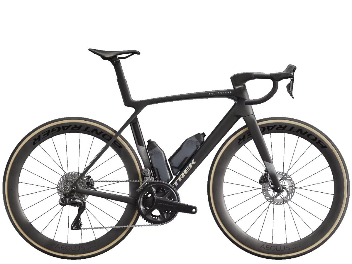 De Madone SLR 7 AXS Gen 8 is een aerodynamische, vederlichte volbloed racefiets. Het 900 Series OCLV Carbon frame houdt het gewicht laag, maar biedt wel aerodynamische voordelen terwijl de IsoFlow-technologie betekent dat je snelheid niet ten koste gaat van het rijcomfort. Hij wordt raceklaar geleverd met een Shimano Ultegra Di2 2x12 groepset met draadloos schakelsysteem, Bontrager Aeolus Pro 51 carbon wielen, een Trek Aero RSL geïntegreerde stuur/stuurpen en RSL Aero bidons en bidonhouders die de luchtweerstand nog verder verlagen.